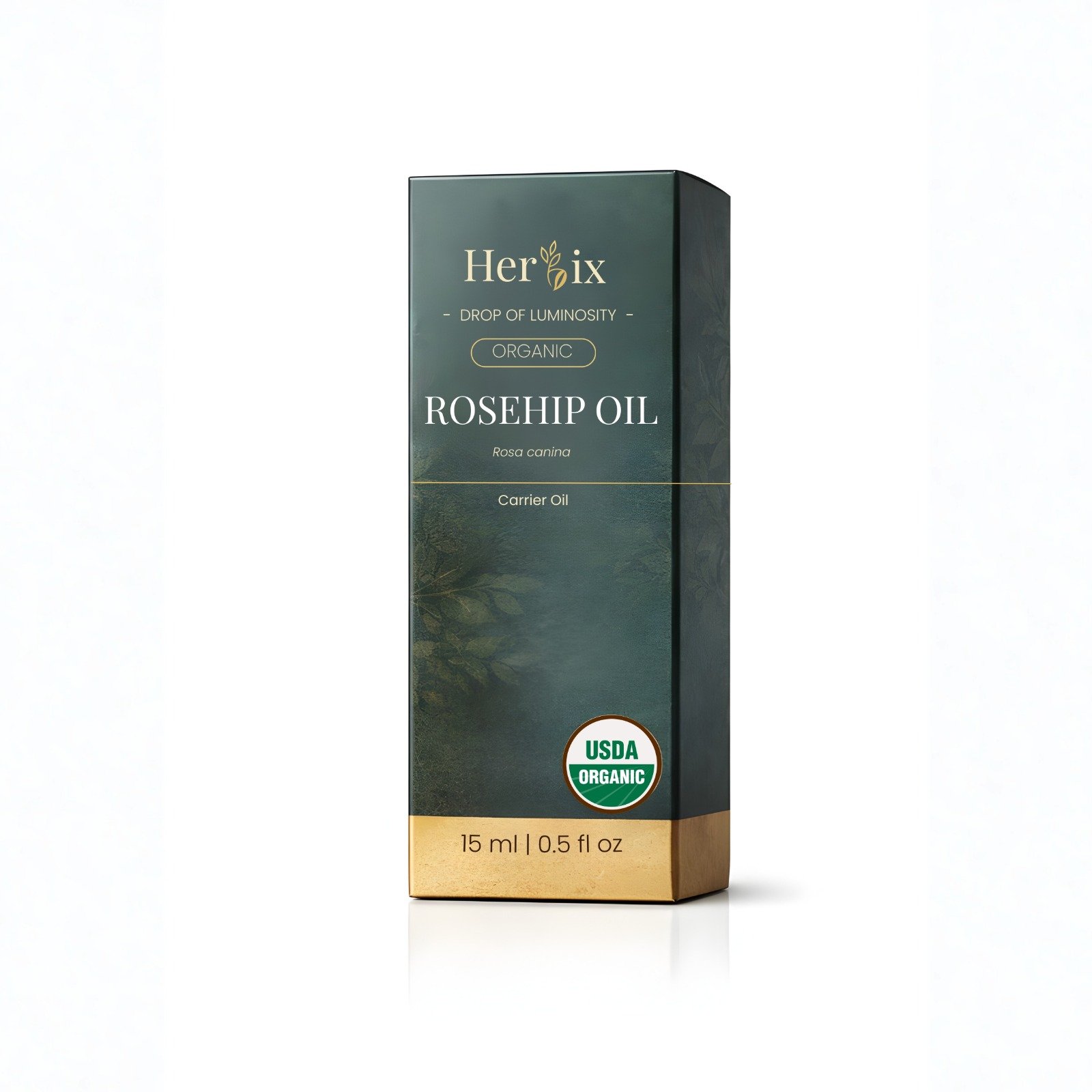 Herbix Organic Rosehip Oil (Rosa canina) is a nourishing carrier oil for skin and hair. USDA Organic certified. 15ml dropper bottle.
