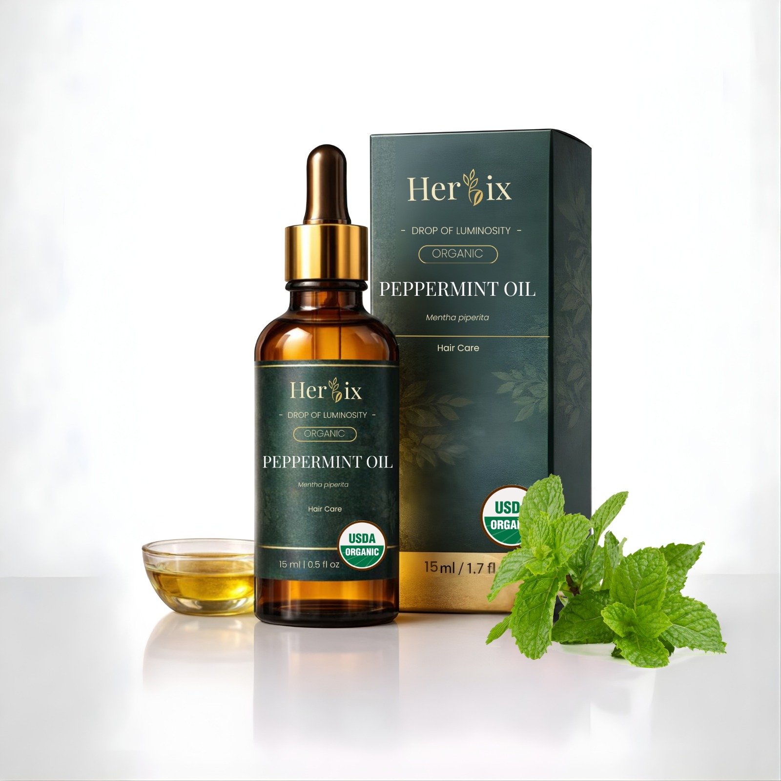 Herbix Organic Peppermint Oil (Mentha piperita) for hair care. Refreshing, USDA Organic certified, and packed in a 15ml dropper bottle.Revive your scalp and hair routine with Herbix Peppermint Oil. Organic, USDA certified, premium quality.